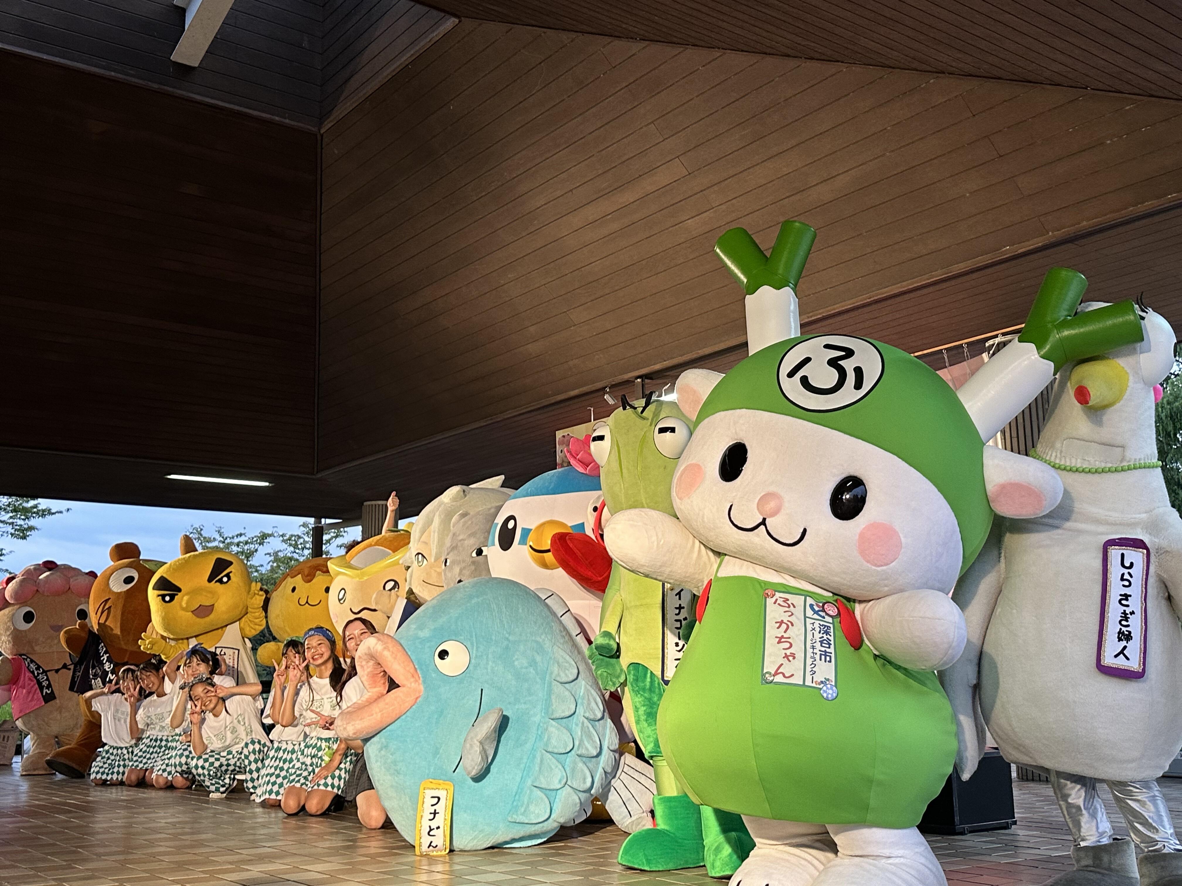 たかたのゆめちゃん、えぼし麻呂、あゆコロちゃん、えび~にゃ、ふっかちゃん