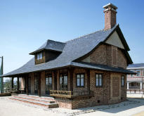 日本煉瓦製造株式会社は、明治20(1887)年に設立され、深谷で操業を開始しました。製造された煉瓦は、法務省旧本館や旧碓氷峠鉄道施設などに使用され、日本の近代化に大きく寄与しました。しかし、時代とともに煉瓦需要が減少したこと、安価な外国産煉瓦の市場拡大を原因として平成18(2006)年約120年の歴史に幕を下ろしました。工場の一部として「ホフマン輪窯6号窯」「旧事務所」「旧変電室」が残り、専用線の一部であった「備前渠鉄橋」とともに平成9年5月、国重要文化財に指定され、現在、深谷市が所有、管理を行っています。
